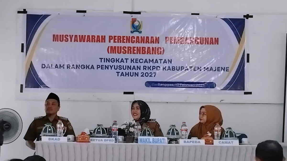 Majene,– Pemerintah Kabupaten Majene terus memantapkan arah perencanaan pembangunan daerah dengan menggelar Musyawarah Perencanaan Pembangunan (Musrenbang) tingkat Kecamatan Banggae dalam rangka penyusunan Rencana Kerja Pemerintah Daerah (RKPD) Kabupaten Majene Tahun 2027. Kegiatan tersebut berlangsung di Kecamatan Banggae, Selasa (10/2/2026).