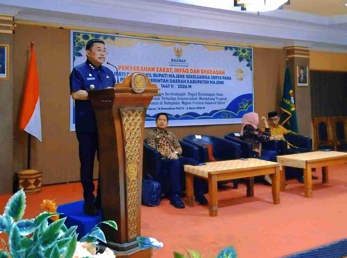 Majene, – Pemerintah Kabupaten Majene melaksanakan penyerahan zakat, infaq, dan sedekah dari Bupati dan Wakil Bupati Majene beserta keluarga serta para pejabat lingkup Pemkab Majene tahun 1447 H/2026 M. Kegiatan tersebut berlangsung di Ruang Pola Kantor Bupati Majene, Jumat (6/3/2026).