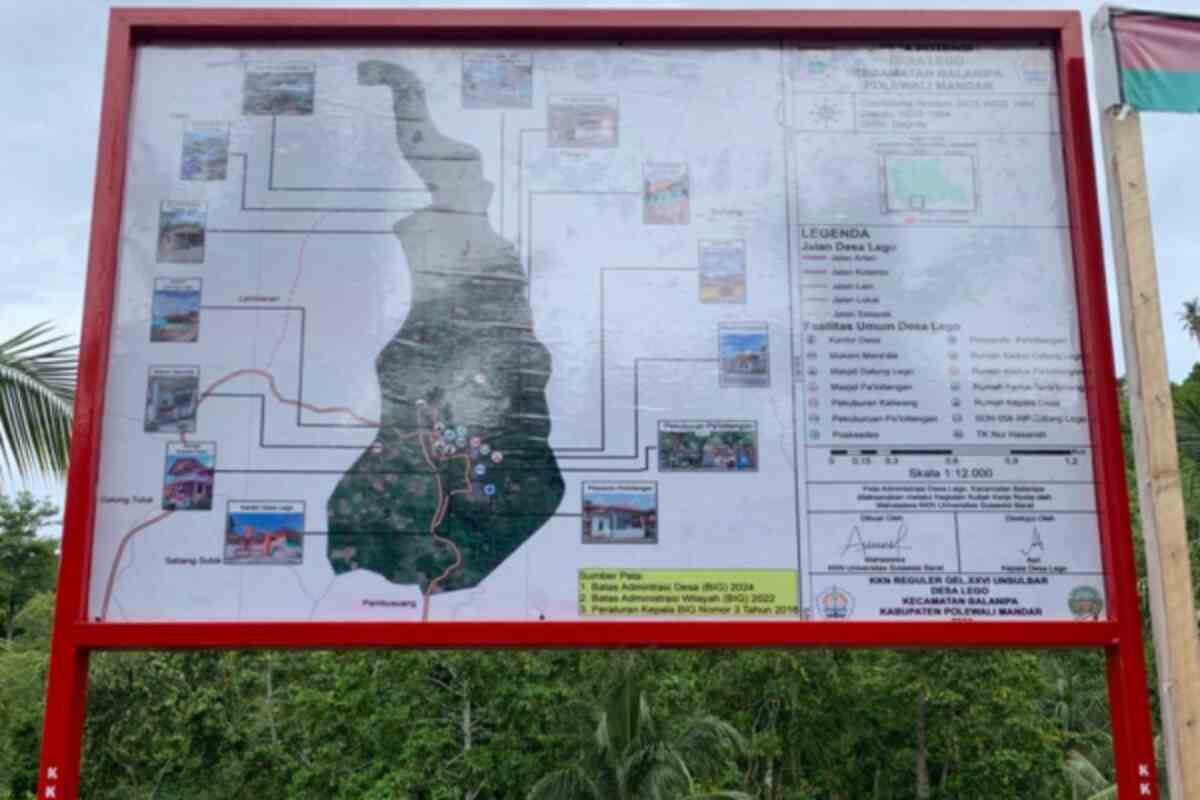 Majene – Mahasiswa Kuliah Kerja Nyata (KKN) Universitas Sulawesi Barat (Unsulbar) yang melaksanakan pengabdian di Desa Lego, Kecamatan Balanipa, Kabupaten Polewali Mandar, berhasil menyusun dan memasang Peta Desa Lego sebagai bagian dari program kerja pengabdian kepada masyarakat.