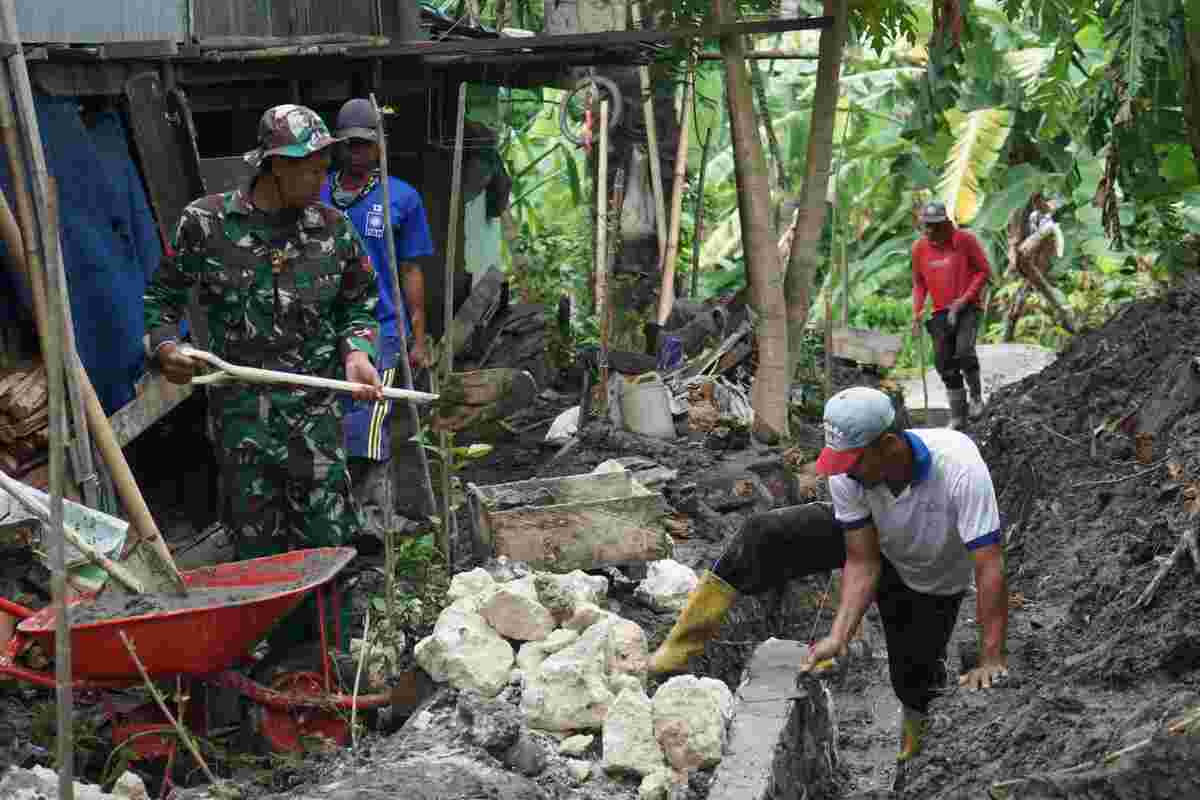 Salah satu warga, Abdullah (42), mengaku bangga bisa ikut bergotong-royong bersama anggota TNI.