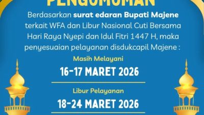 Majene,– Dinas Kependudukan dan Pencatatan Sipil (Disdukcapil) Kabupaten Majene mengumumkan penyesuaian jadwal pelayanan kepada masyarakat…