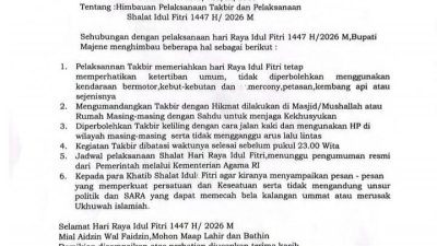 MAJENE,– Bupati Majene menerbitkan surat imbauan terkait pelaksanaan takbiran dan Salat Idulfitri 1447 Hijriah/2026 M….